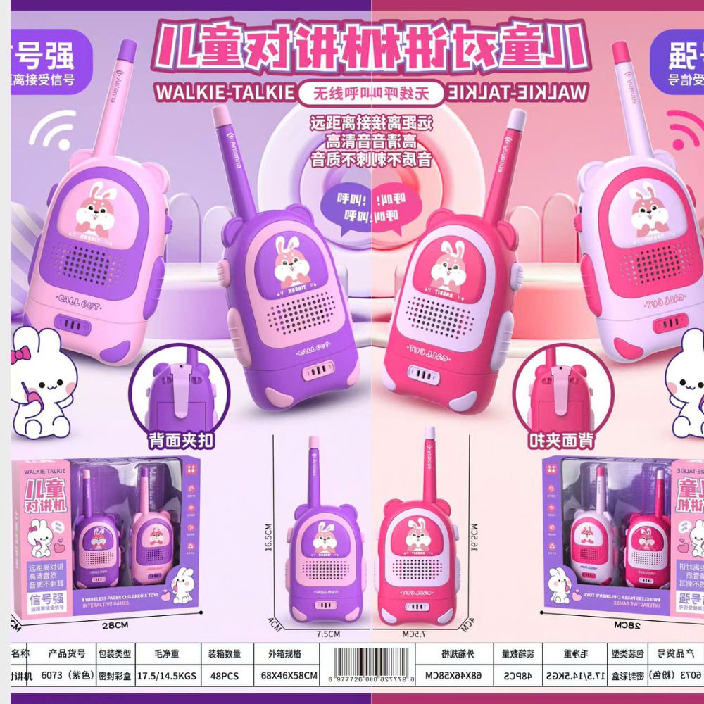Bộ đàm 2 chiều thiết kế hoạt hình đáng yêu, giúp bé trao đổi, trò chuyện dễ dàng trong khoảng cách 500m, qua đó phát triển khả năng ngôn ngữ, giao tiếp và kỹ năng xã hội cho bé iu.