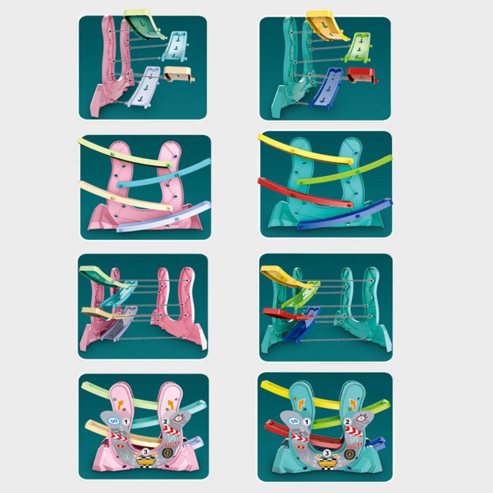 Đi kèm nhiều chiếc xe nhỏ dễ thương, bánh xe linh hoạt giúp chuyển động mượt mà trên từng đoạn đường trượt.