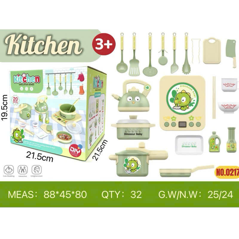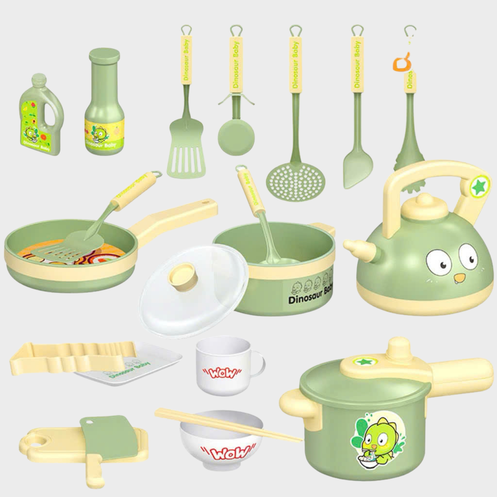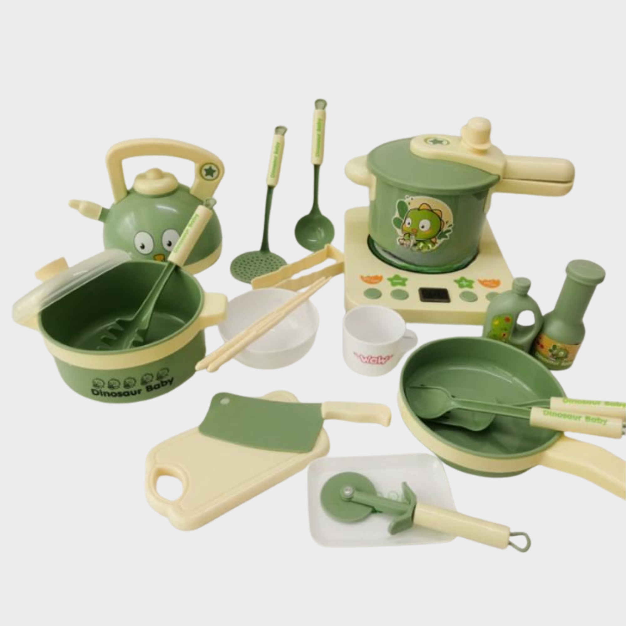 Bộ đầy đủ gồm: nồi, chảo, bếp, ấm nước, dụng cụ nấu ănThiết kế bo góc an toàn, chất liệu nhựa cao cấpMàu sắc dễ thương, chụp hình siêu xinhGiúp bé phát triển trí tưởng tượng & kỹ năng