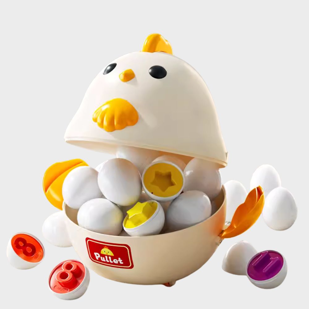 Bé sẽ phát triển khả năng tư duy, ghi nhớ và phối hợp tay mắt thông qua việc tìm đúng nửa trứng phù hợp để ghép lại.